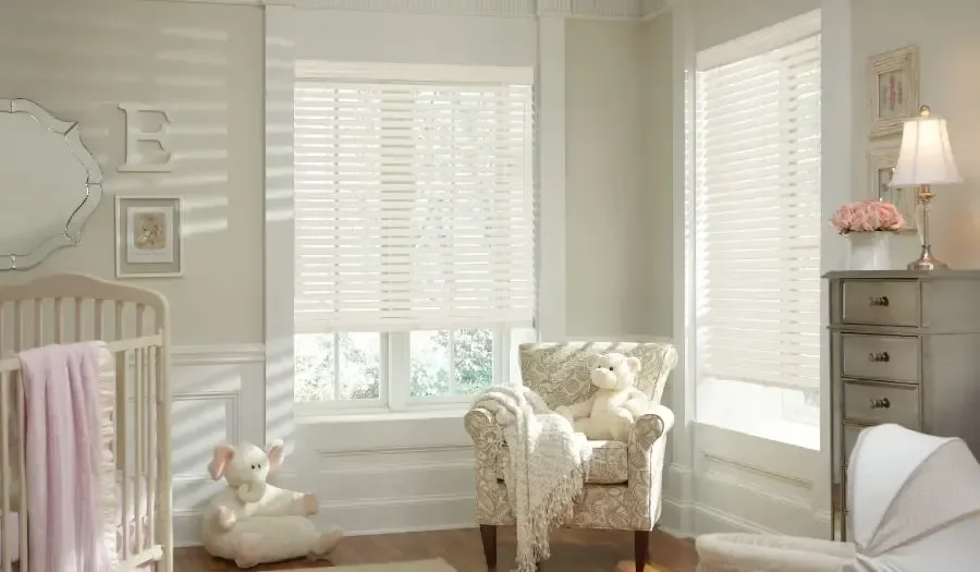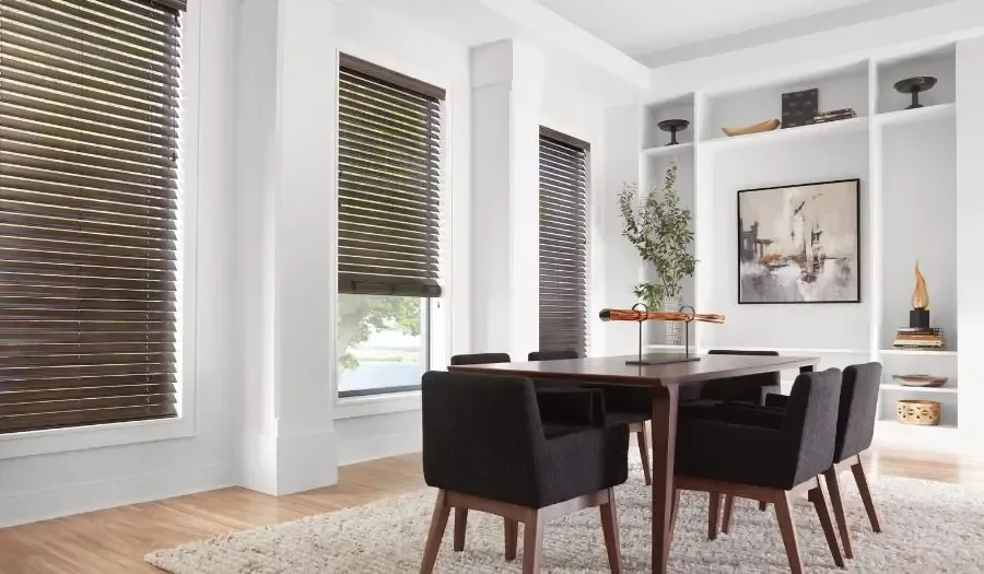 Durable alternative wood blinds resist humidity and sun, delivering classic style, smooth light control, outdoor views, and long-lasting performance without warping or fading.