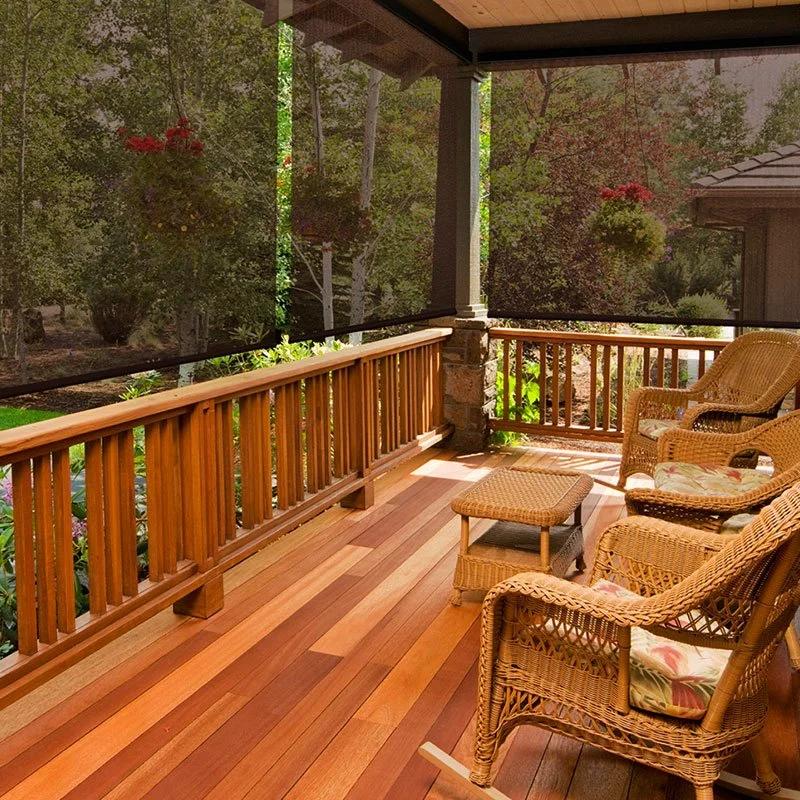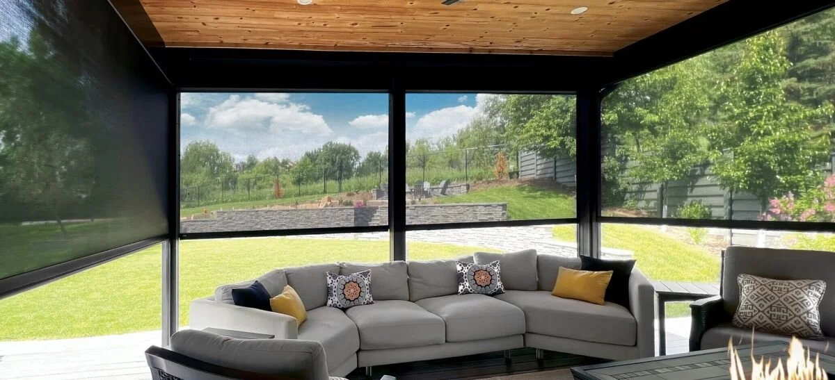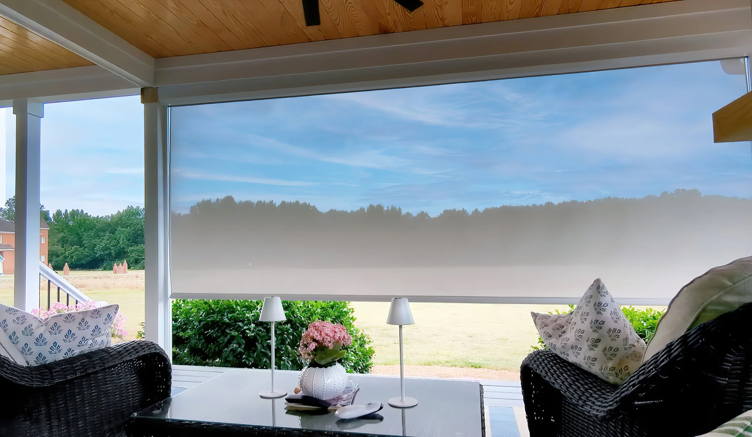 Patio insect shade that blocks heat and UV rays while sealing out bugs with a secure zip-track system. Available with motorized operation for effortless outdoor comfort.