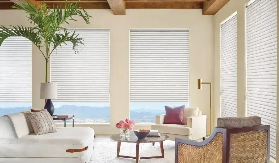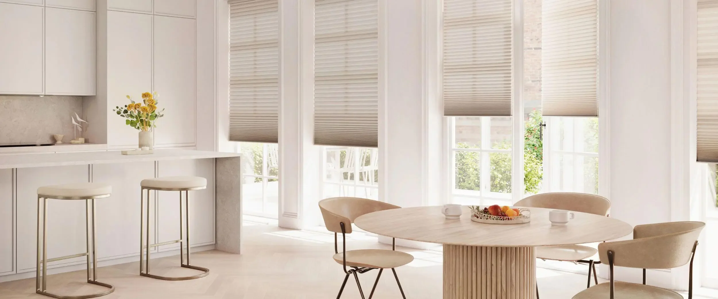 Energy-efficient honeycomb shades deliver year-round comfort, soft natural light, sound absorption, and flexible privacy with beautifully crafted, high-quality fabrics.