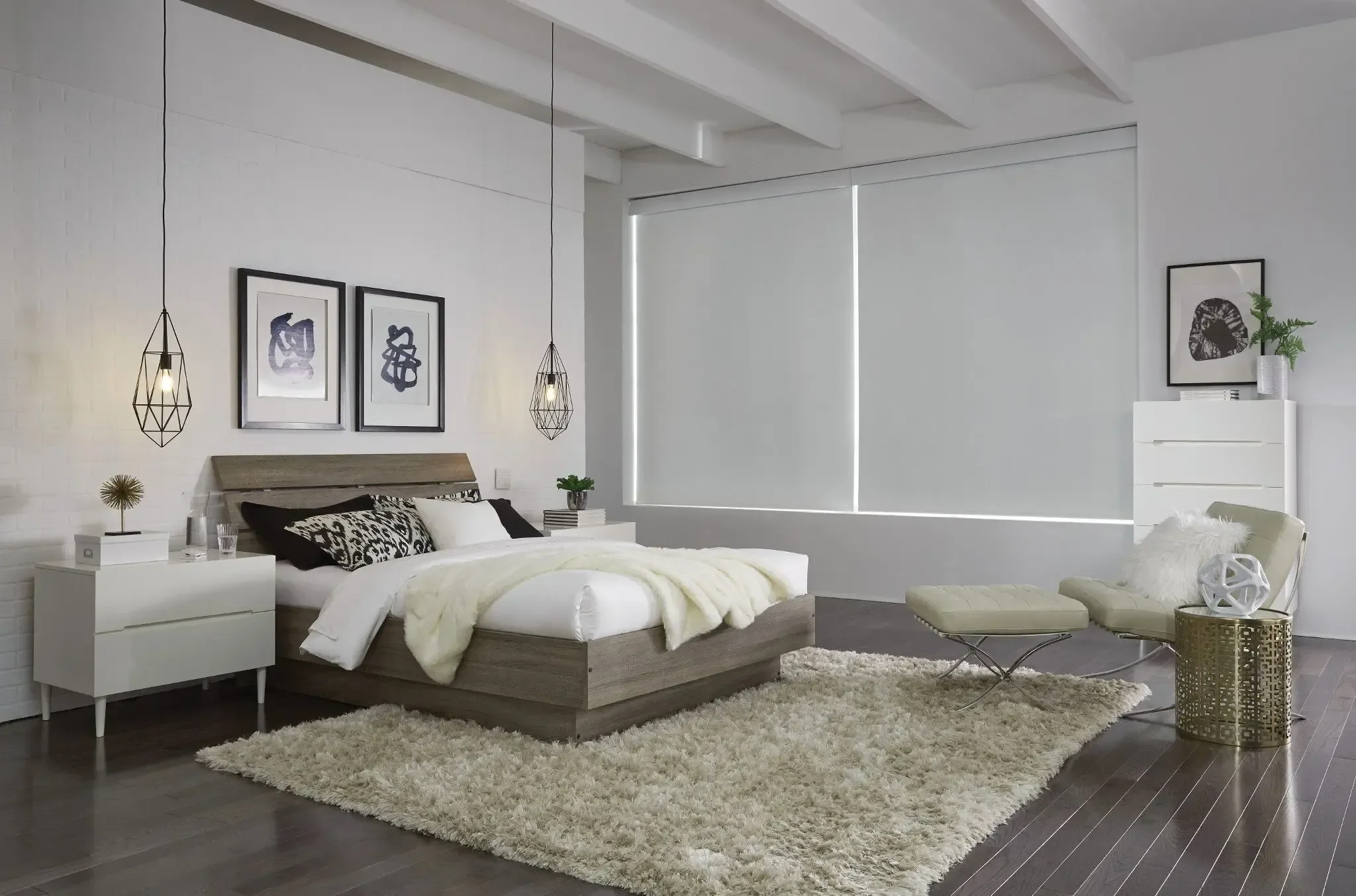 Clean, minimal roller shades offer timeless versatility, smooth operation, and a wide range of fabrics and finishes to suit any room, style, or light need.